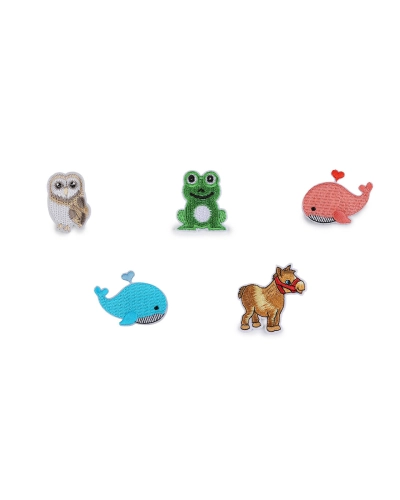 Vasalható varrható matrica, béka, bagoly, ló foltok - 10 db.